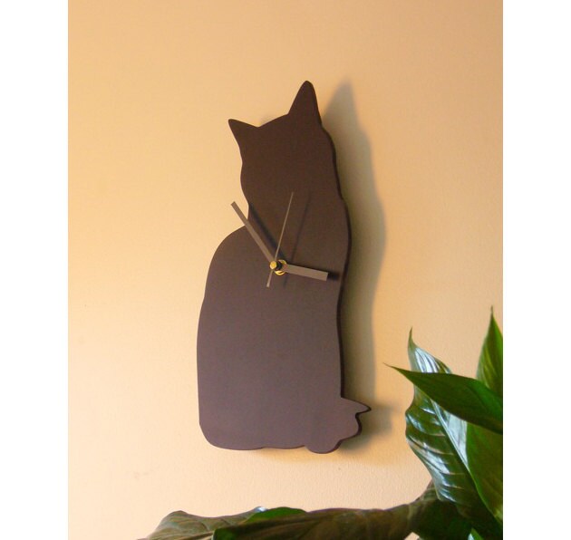 The black painted wooden cat clock with grey hands is a special accessory for your living room, bed room or wherever you want your pussy cat to wait for you...